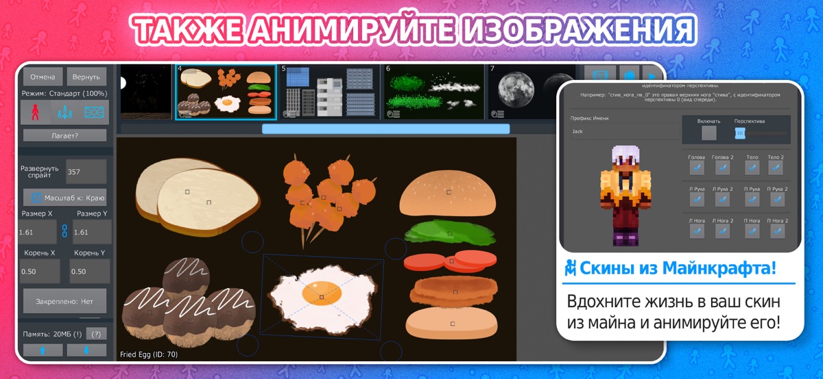 С недавних пор, Stick Nodes стал так же и Майнкрафт аниматором! Импортируйте свои скины в приложение и сразу же приступите к их анимации!