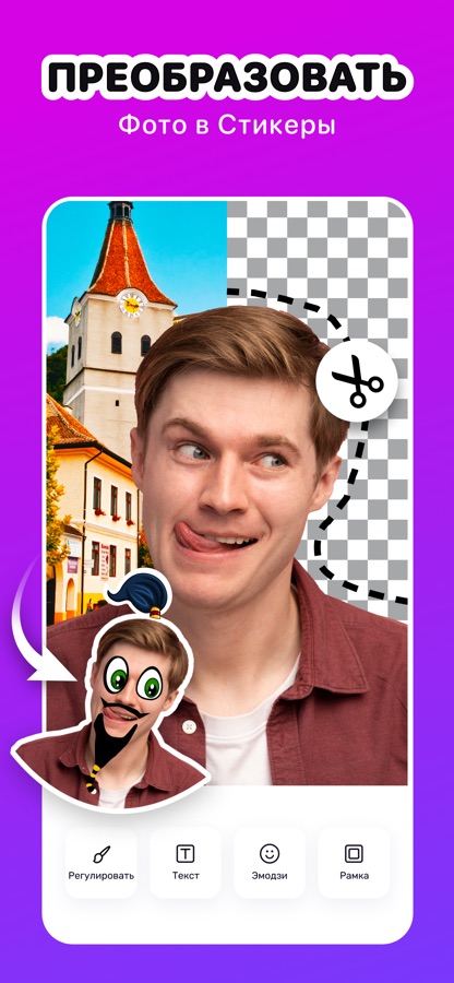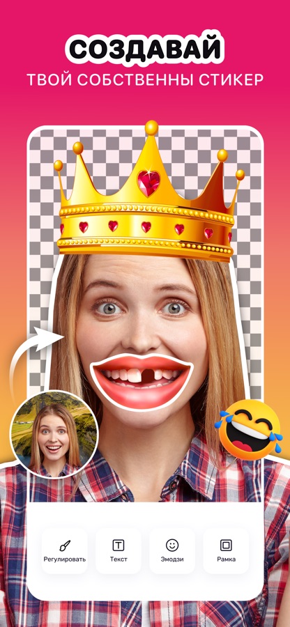 • Обрезать, вращать, формировать фотографии, чтобы сделать стикеры
