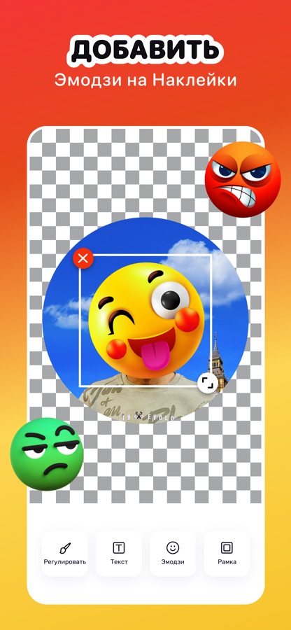 — В разделе «Эмодзи» добавьте любой смайлик к своей картинке.