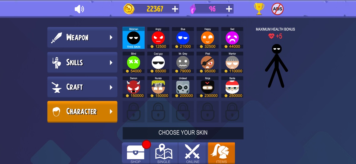 Правила просты: вы указываете на Stickman, в каком направлении пролететь через арену, перемещая палку. Переместите в 4 плоскости, используйте физику, чтобы вращать оружие в ваших руках и нанести максимальный урон! В случае опасности вы всегда можете бросить оружие в свои руки врагу, чтобы прикончить его! Есть огромный выбор оружия для всех вкусов.