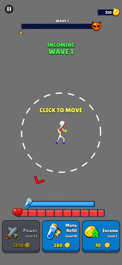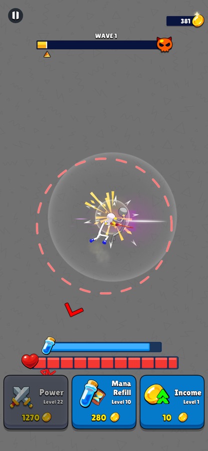 When the enemy is inside the hoop, tap on the screen, defeat the enemy, use upgrades, destroy waves of enemies and win the game!