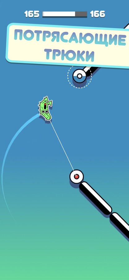 Нажимайте на экран, чтобы цепляться крюком и совершать невероятные прыжки, избегая препятствий. Сумеете ли вы выполнить все эти акробатические трюки подряд круче всех?
