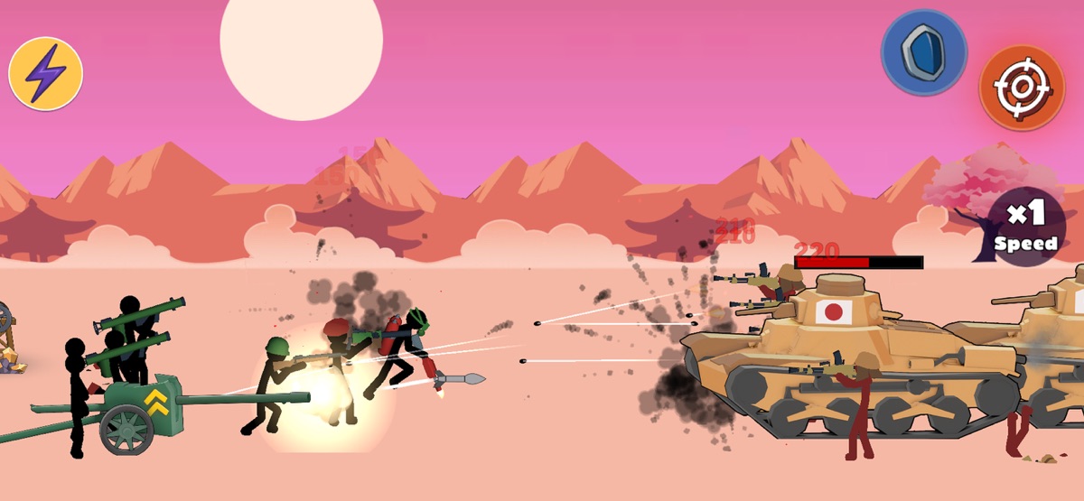 Fight for any country in World War II! Assemble the most powerful army of stickman from machine guns, flamethrowers, cannons and tanks. Create your own story with your strategy and tactics in the real-time strategy game of World War II!