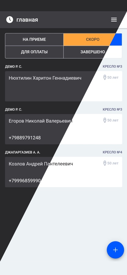Всегда актуальное расписание клиники, возможность записать пациента на прием, можно видеть кто сейчас на приёме, а кто уже был на приёме и многое другое.