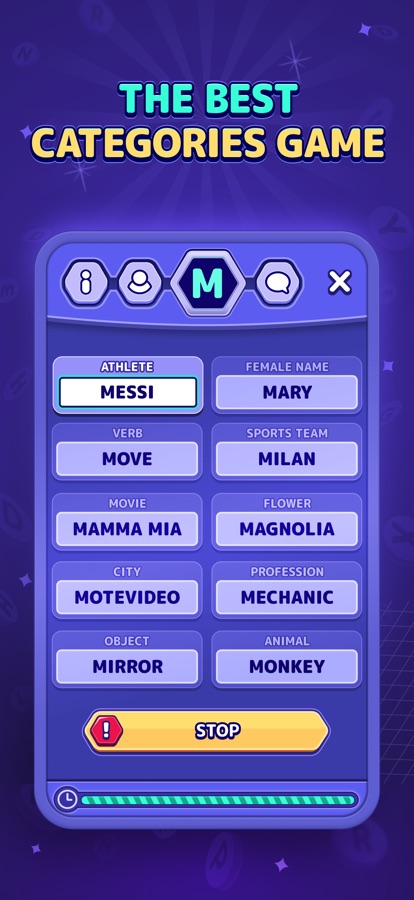 When the round starts, a random letter is chosen and your goal is to fill in all categories before time runs out. The faster and more creative your answers, the higher your score.