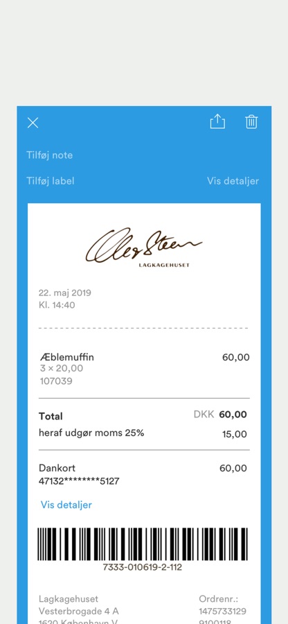 Med Storebox’s app kan du nemt holde styr på alle dine kvitteringer. Tilmeld dine betalingskort på www.storebox.com eller direkte i app’en og du er klar til at bruge tjenesten. Du vil helt automatisk modtage digitale kvitteringer fra de køb, du foretager med dine betalingskort i de mange butikker, der er tilmeldt Storebox.