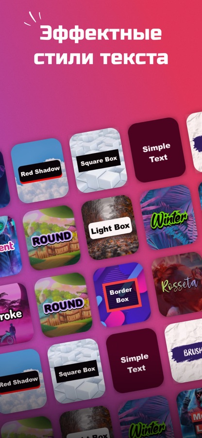 Эффекты текста и анимация – оживите слова с динамическими анимациями, 6 стилями теней, 20+ цветами и фоновыми эффектами (кисть, диалоговое окно и др.).