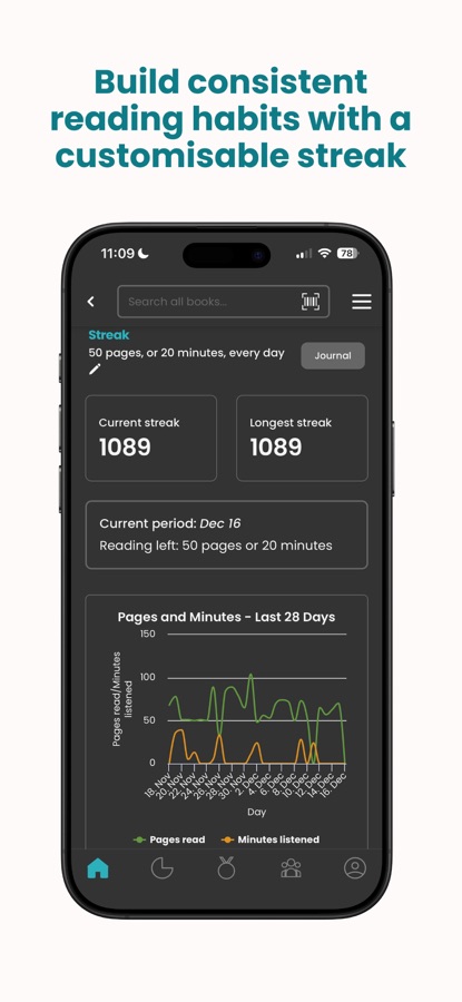 • Annual reading, page, and listening goals