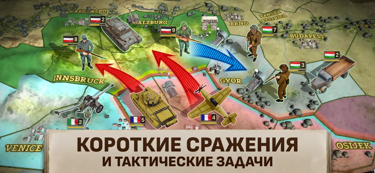 Погрузись в одну из самых проработанных мобильных стратегий, основанных на Второй Мировой, и вдохновленную лучшими играми жанров Гранд-стратегия, 4x TBS.