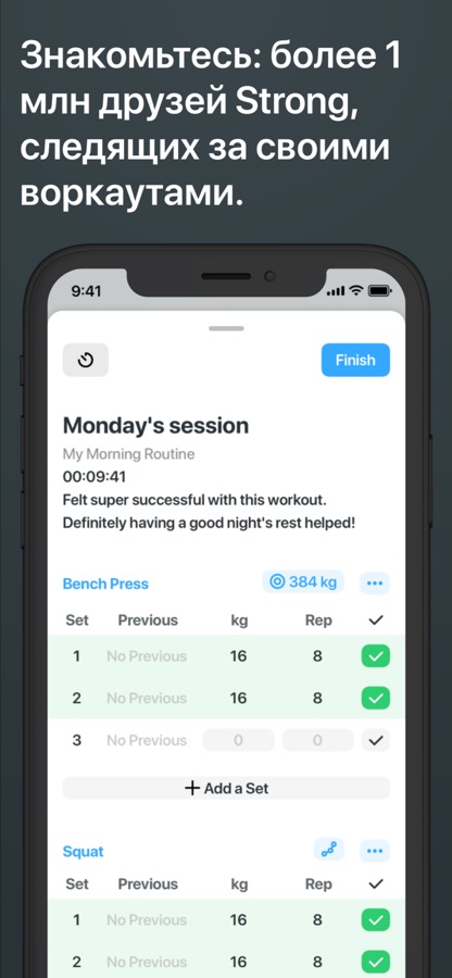Приложение Strong оптимизировано для прогрессивных программ для штанги, таких как Starting Strength или StrongLifts 5×5, но оно также и легко адаптируемо к любой другой программе по вашему выбору!