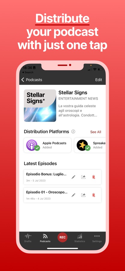— Share with all the major podcast platforms in seconds (Google Podcasts, Apple Podcasts, Spotify, and more) with one-tap distribution.