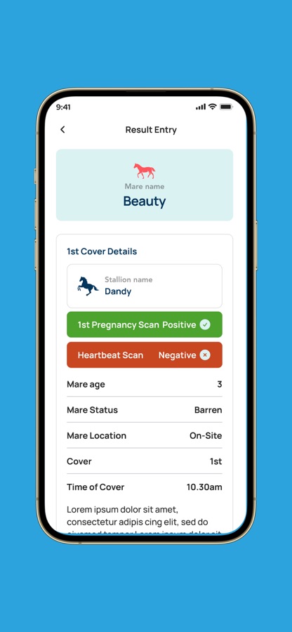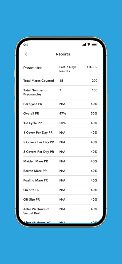 Fertility analysis app for the thoroughbred breeding industry. In conjunction with web based software, analyses individual stallion data and produces fertility performance statistics and graphs through mare, cover and pregnancy data entry