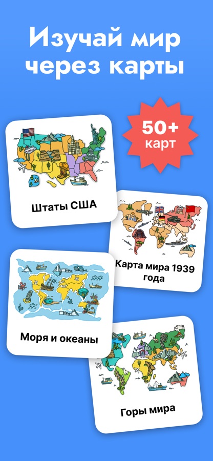 Изучайте не только политическую карту мира, но и карты морей и океанов, рек, гор, регионов стран и исторических периодов.