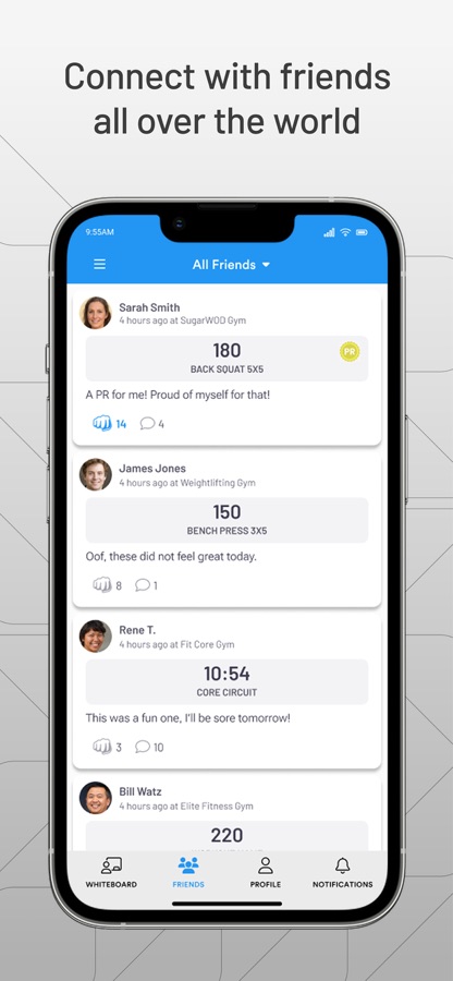 Over 500,000 affiliate athletes use SugarWOD to track their workouts and PRs! With commenting, photo sharing and community scoreboards, you can connect with friends and coaches, inside and outside the gym. Athletes have even given each other more than 35 million fist bumps! The app also creates a better WOD experience with performance tracking, movement prep videos, and a way for your friends to support you when you get that back squat PR.