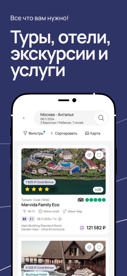 Новое приложение от ведущего туроператора. Простое и быстрое бронирование путешествий прямо в телефоне.