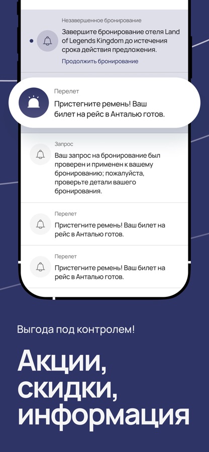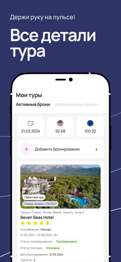 Настройтесь на отдых с нами! Забронируйте онлайн, оплатите в несколько касаний и отслеживайте статус заказа в режиме реального времени прямо в телефоне.
