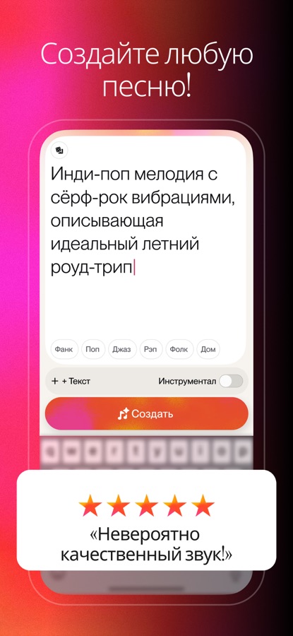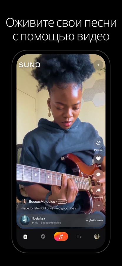 Создавайте и открывайте для себя музыку с Suno, музыкальной студией на базе ИИ — прямо в своем смартфоне.