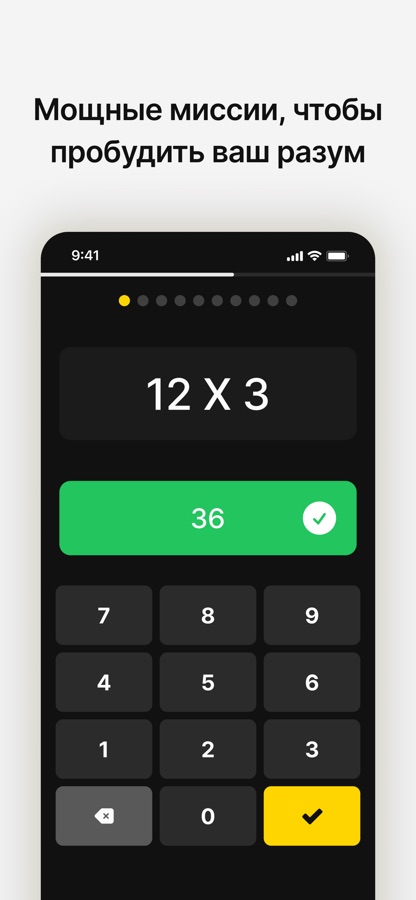 • Шесть миссий для отключения будильника, включая математические задачи и игры на память