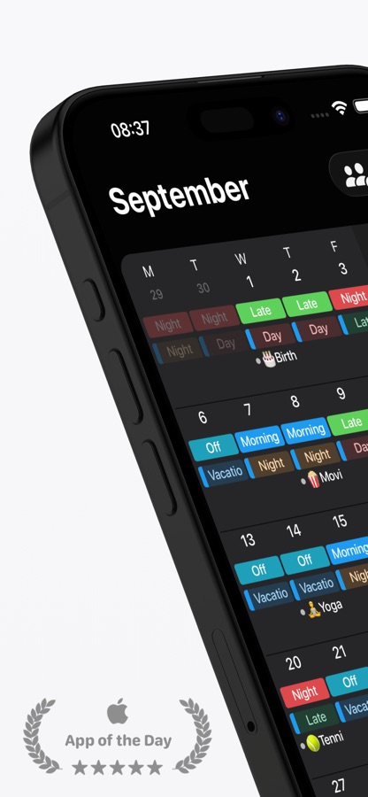 Supershift – это календарь, созданный для работающих посменно. Настройка цветов и значков смен. Также возможно добавление заметок, перерывов, местоположения и нескольких смен в день.