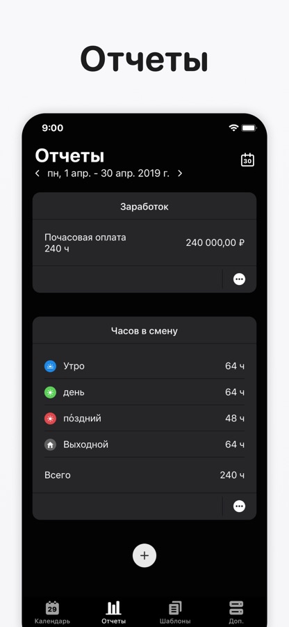 Создание отчетов о «Заработке», «Часах по сменам», «Сверхурочных» и «Подсчет смен» (напр. для расчета дней отпуска).