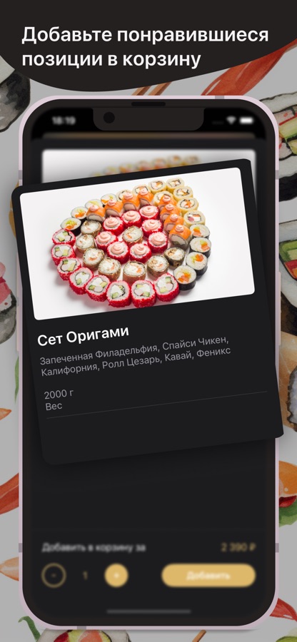 Как сделать заказ в приложении “Цезарь”: выберите понравившиеся позиции из меню, добавьте их в корзину и перейдите на экран оформления заказа (по нажатию на иконку корзины).