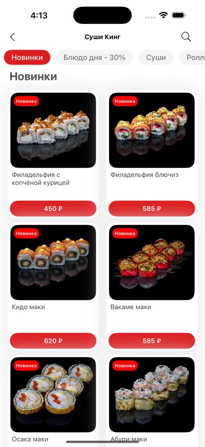 В «Sushi King» мы готовим и доставляем самые вкусные суши, роллы, поке, итальянскую пиццу, различные закуски и салаты, лапшу, стейки, шашлык на углях, десерты и напитки!