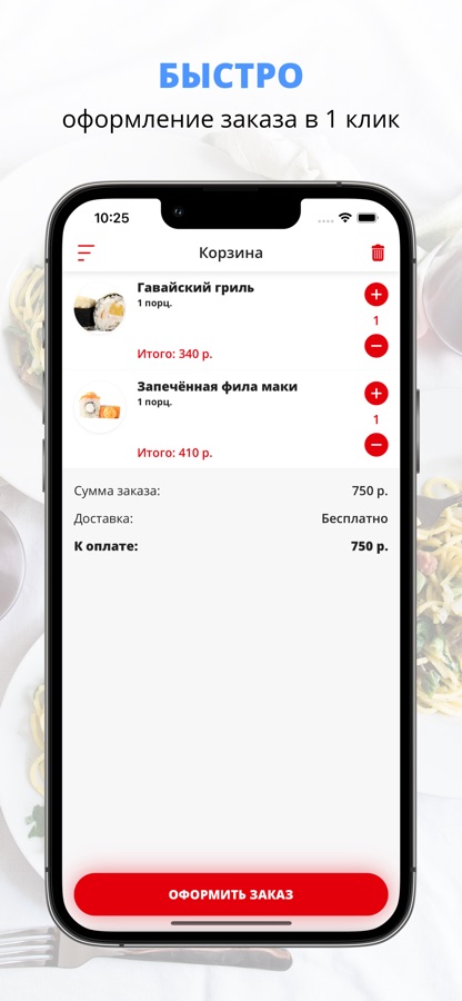 Скачивайте наше приложение, оформляйте заказ и наслаждайтесь любимой едой, где бы Вы ни были! Приятного аппетита!