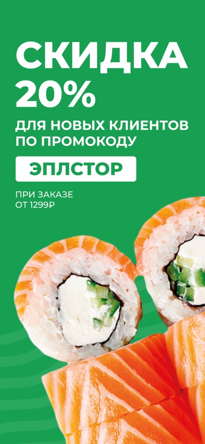 Скидка 20% от 1299 рублей для новых клиентов по промокоду «аппстор»