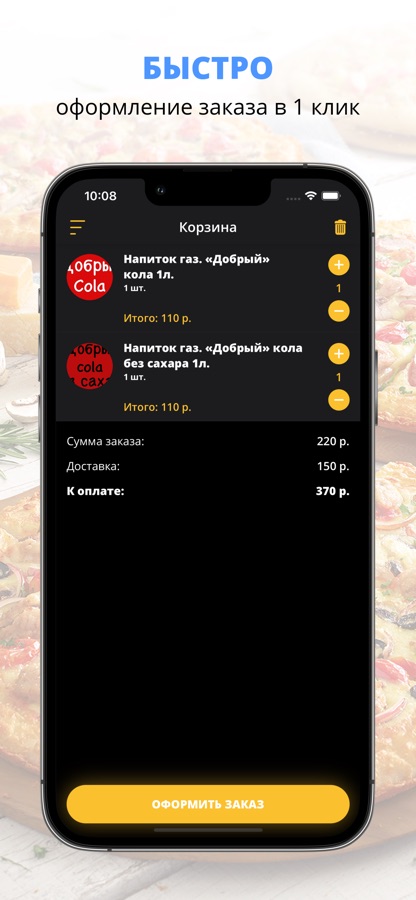 Скачивайте наше приложение, оформляйте заказ и наслаждайтесь любимой едой, где бы Вы ни были! Приятного аппетита!