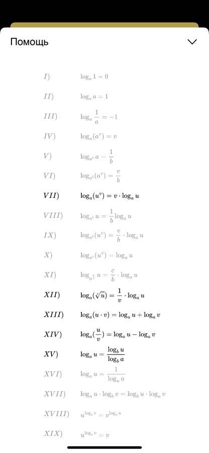 — полный список правил логарифмирования