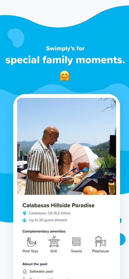 Swimply lets you rent beautiful private spaces for swimming, playing, relaxing, or hosting events. Whether it’s with family, friends, or pets — it’s your own private escape, just minutes away.