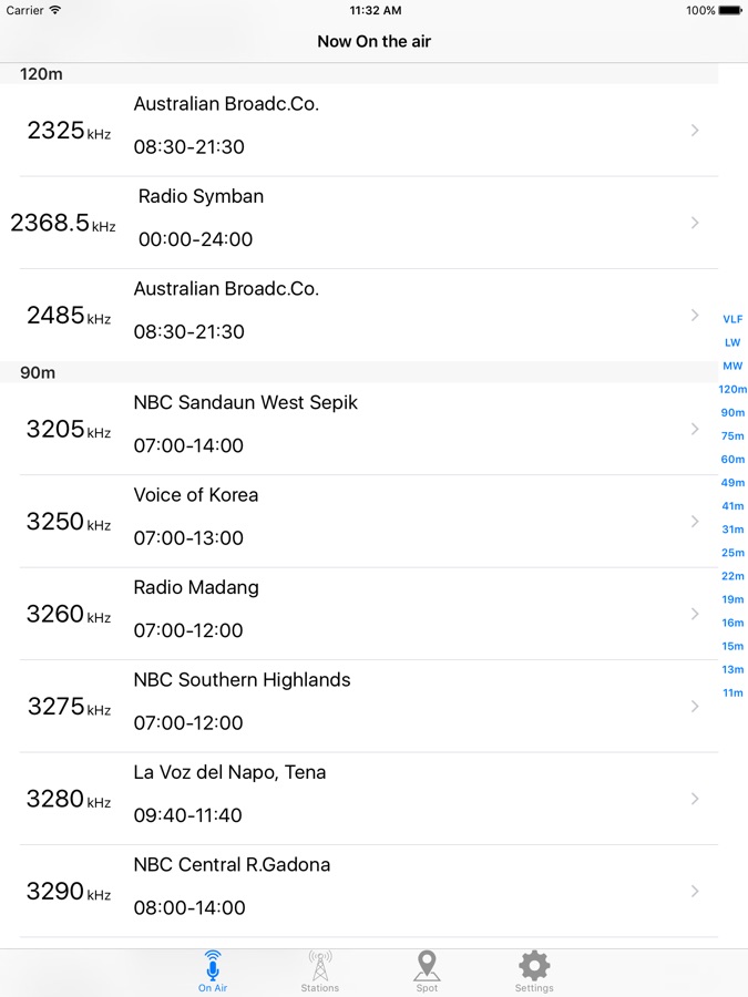You can finding what’s on a specific frequency, using the «On the air view», sliding, using band index or searching the frequency by the search bar.