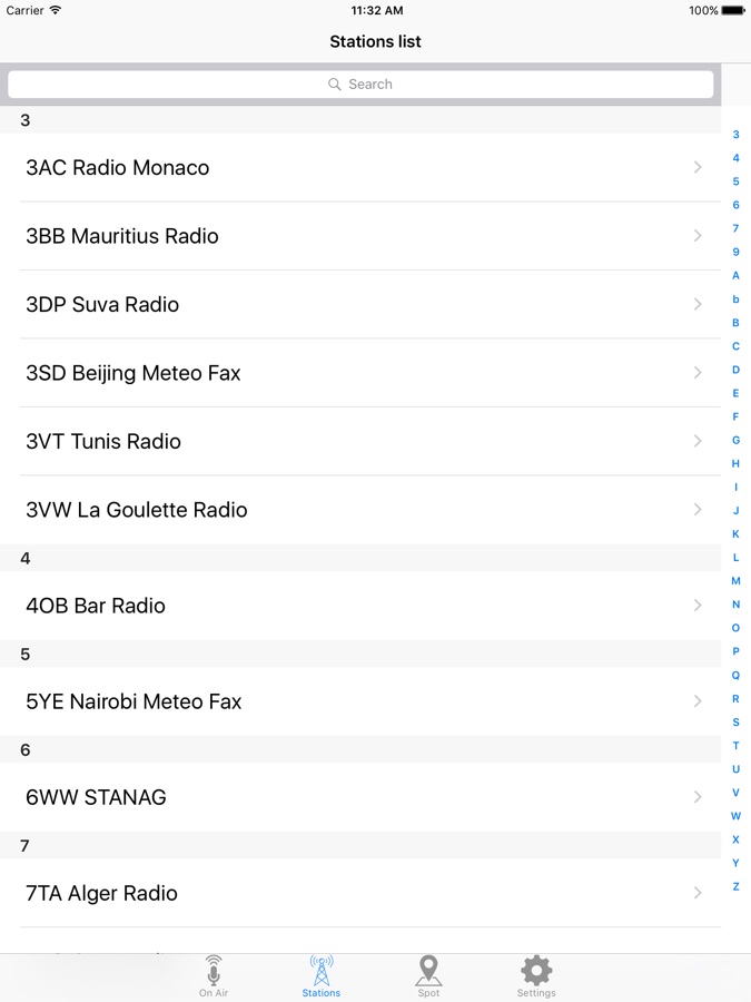 In the «Stations view» choose your desired station from the list and you’ll see how many frequencies of that station are currently online, followed by the complete broadcast schedule. The list is sorted by the station’s name.