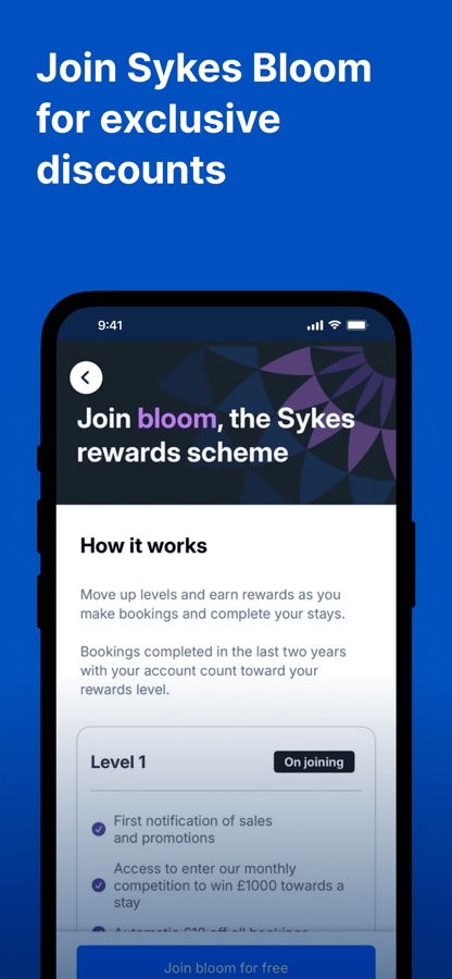 When you book through the Sykes app, you’ll be able to unlock access to Bloom, our free app-only rewards scheme. Members enjoy exclusive savings and perks, including: