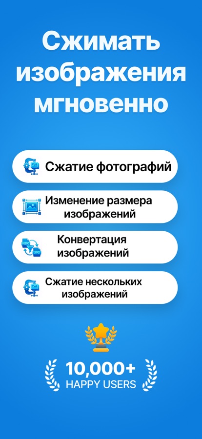 Сжимайте фото до 90% меньше без потери качества. Изменяйте файлы изображений до точных размеров. Уменьшайте размер фото для вложений, Instagram, TikTok, Facebook, веб-сайтов. Наше приложение поддерживает JPEG, PNG, WebP, HEIC/HEIF. Сжимайте фото пакетами, изменяйте файлы изображений эффективно.