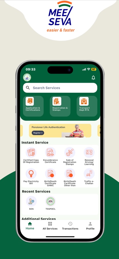 MeeSeva is an official citizen service app offering government services, payments, certificates, and more for residents of Telangana