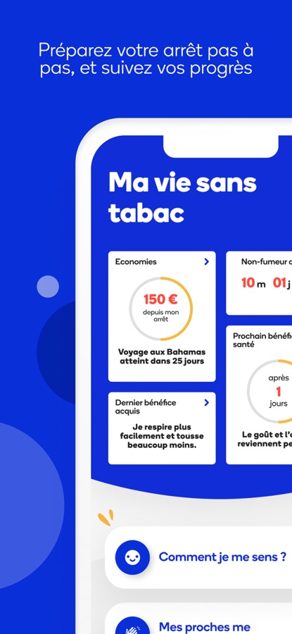 Vous voulez arrêter de fumer ou venez de rechuter ? Cette appli propose plein de contenus pour vous préparer votre arrêt et ne pas craquer, transforme vos proches en supporters, appelle un tabacologue en cas de besoin !