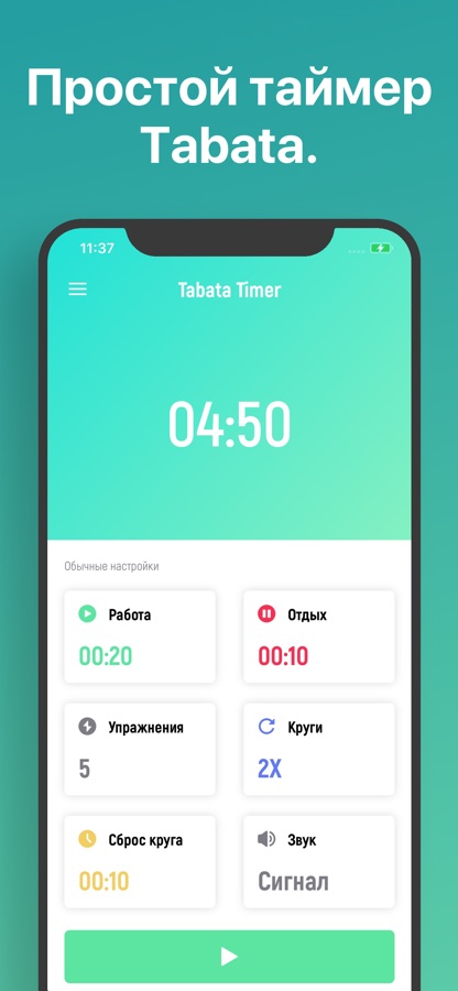 Таймер тренировки Tabata, который прост, понятен и красив.
