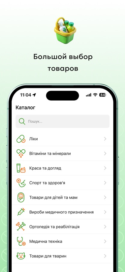 • постоянно обновляемые данные о наличии товаров и цене от лицензированных аптек по всей Украине;