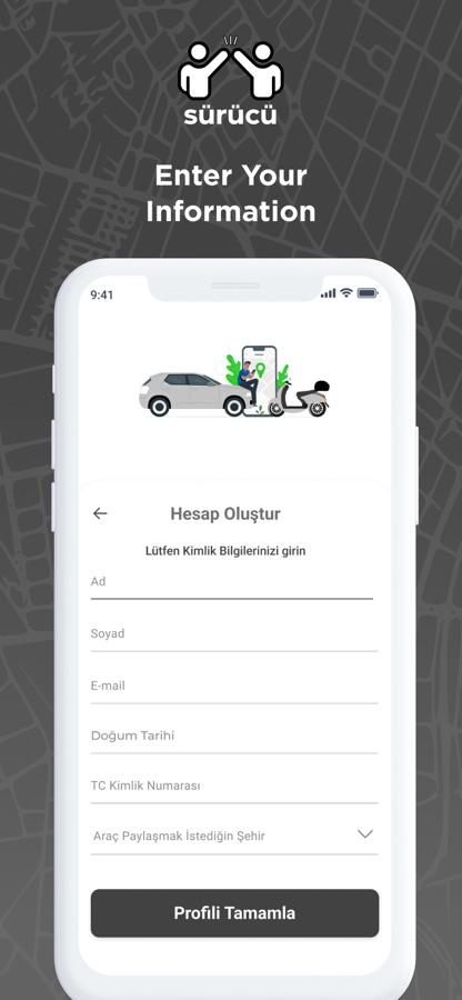 — Kişisel bilgilerini ve araç detaylarını yükle.