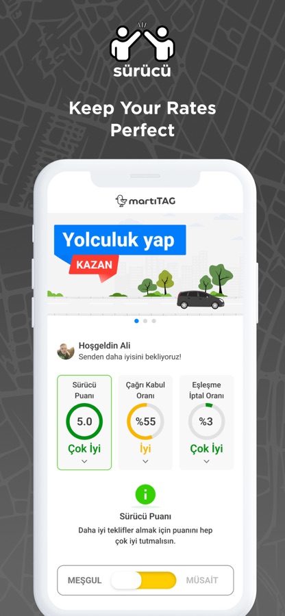 Hızlı ve konforlu yolculuk isteyen kullanıcılar, Martı uygulaması içerisinden TAG ile araç çağırarak diledikleri yere, istedikleri anda gidiyor. Sen de TAG Sürücü‘ye kaydol, şehrin trafiğini yol arkadaşınla aş ve ulaşmak istediği yere en hızlı şekilde ulaştır!