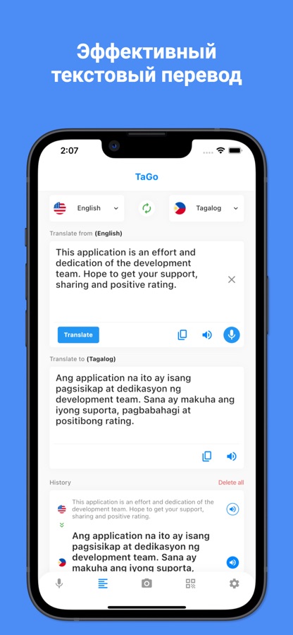 TagaGo — ведущее приложение для перевода на тагальский язык с множеством выдающихся функций, таких как точный голосовой, текстовый и фотоперевод с тагальского на 45 языков и наоборот.