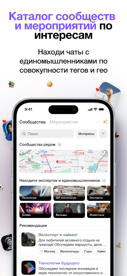 События рядом, сообщества по интересам и общение с единомышленниками — все это теперь в одном приложении! Будь в курсе мероприятий, находи друзей для совместных занятий, организуй встречи и мастер-классы. Все важные события теперь будут собраны в удобный каталог.