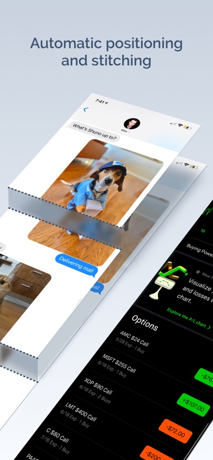 Ever wanted to share a conversation with a friend, but it wouldn’t fit in one screenshot? With Tailor you can! Just take a few overlapping screenshots and Tailor will magically align and stitch them together for you. No more manual alignment, cropping, or blurry stitches. Tailor works with all your favorite apps!j