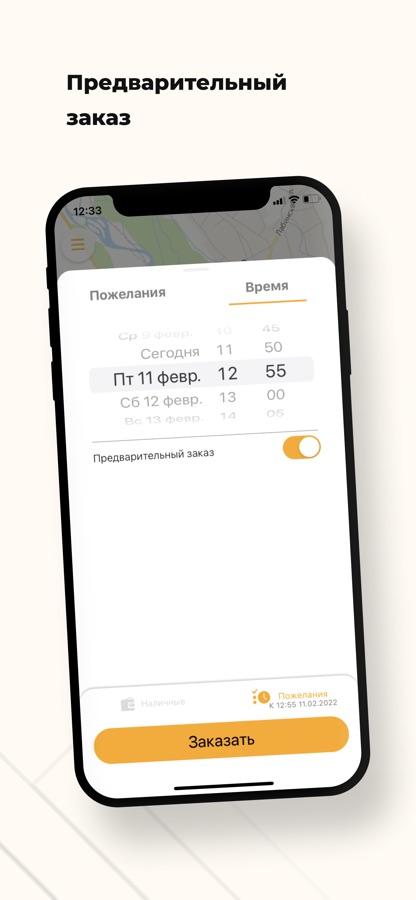 Выберите опцию “Предварительный заказ”. Поиск автомобиля начнется незадолго до заказа поездки, и автомобиль приедет к назначенному времени. Также вы будете заранее знать стоимость поездки.