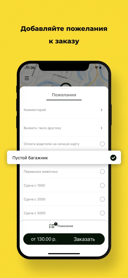 Добавьте к заказу дополнительные пожелания. Например, если с собой много сумок и чемодан, то выберите «пустой багажник». Если у вас большая купюра к оплате — укажите с какой суммы потребуется сдача.