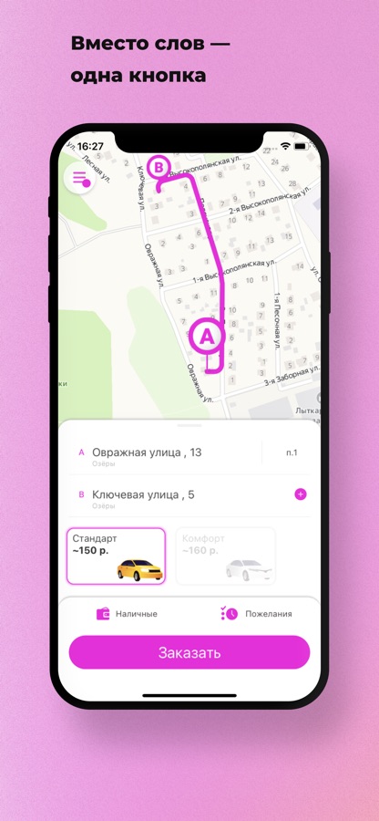 Откройте приложение, укажите адрес и закажите такси, нажав на одну кнопку.