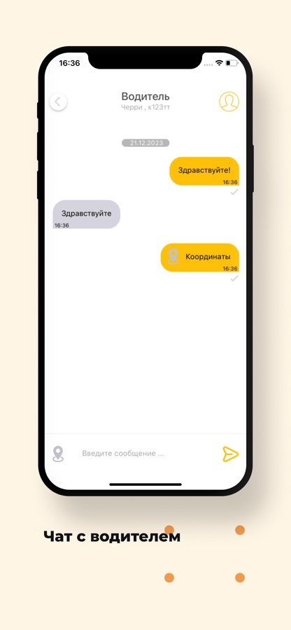 Спросите в чате приложения, где он находится, или отправьте ваши координаты с помощью одной кнопки.