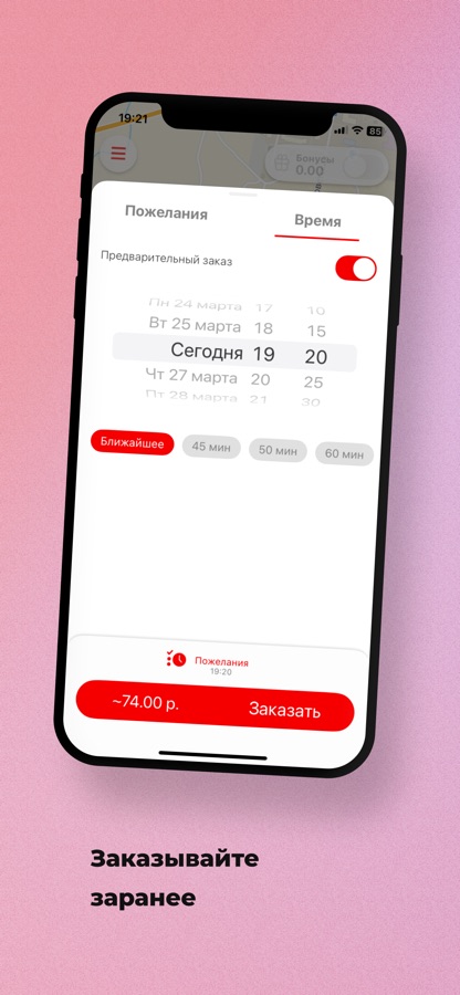 Выберите опцию «Предварительный заказ». Поиск автомобиля начнется незадолго до заказа поездки, и автомобиль приедет к назначенному времени. Также вы будете заранее знать стоимость поездки.