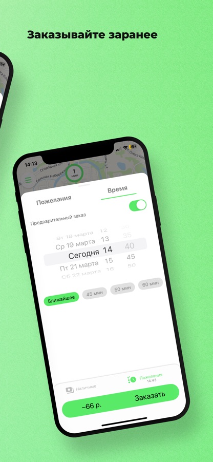 Выберите опцию «Предварительный заказ». Поиск автомобиля начнется незадолго до заказа поездки, и автомобиль приедет к назначенному времени. Также вы будете заранее знать стоимость поездки.